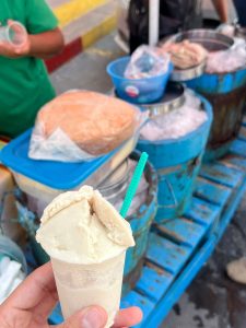 En el zócalo de Mazatepec, Morelos, se encuentra un pequeño puesto donde los sabores tradicionales cobran vida en forma de nieves artesanales a base de leche de vaca y pan casero elaborado a base de maicena. Durante la visita, probé una combinación sencilla pero memorable: una bola de nieve artesanal acompañada de una rebanada de